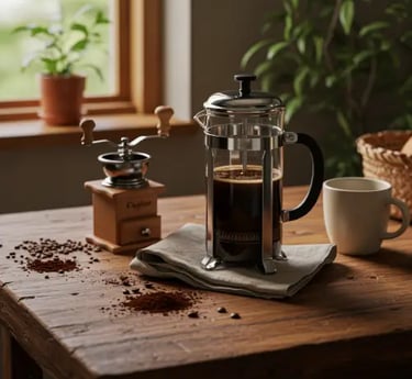 CaféMécanique est né d'une passion simple : celle de redécouvrir l'art authentique du café. Dans un monde dominé par les capsules jetables et les machines complexes, nous avons choisi de revenir à l'essentiel : la Cafetière à Piston, cette merveille d'ingéniosité qui révèle toute la richesse aromatique du café en grains.