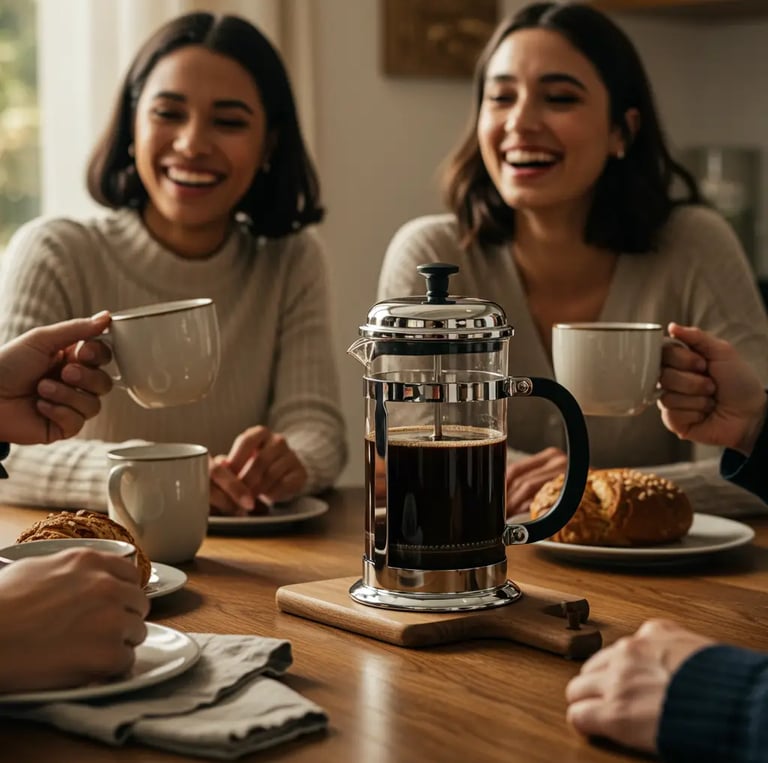 Le café, c'est avant tout un lien social. Nos cafetières artisanales transforment chaque préparation en moment de convivialité. Que ce soit pour un petit-déjeuner en famille ou une pause entre amis, la French Press invite à la dégustation lente et aux échanges authentiques.